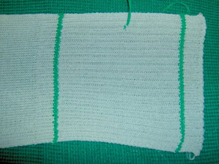 Il primo è il dietro, come si vede è molto semplice, la fascia inferiore e quella superiore sono a costa, la fascia centrale è a maglia rasata. Seguono il mezzo davanti sinistro e la manica. In questo caso ho pensato di fare il polso alto come il bordo della maglia, ma se non piace,si può anche fare più basso, o addirittura fare tutta la manica a costa, ma bisogna stare attenti agli aumenti e alle calature, quindi stiamo sul semplice.
