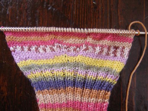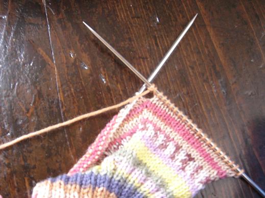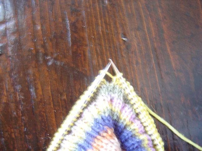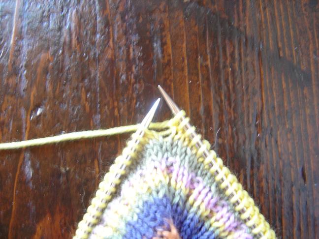 3) Fare 2 dritti e ripetere l’aumento. Proseguire a dritto fino alla fine del ferro