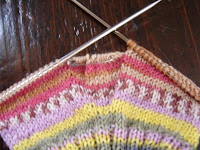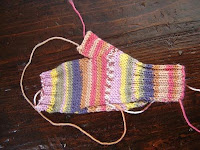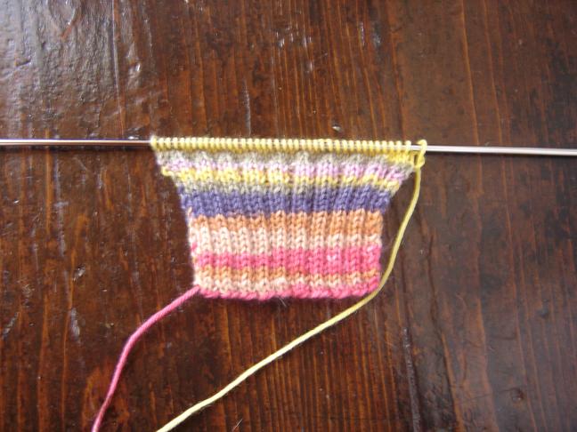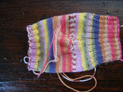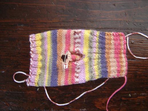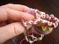 Se volete fare il pollice un po' più alto, con i ferri n.4 si riprendono le maglie lasciate in attesa sullo spillo da balia