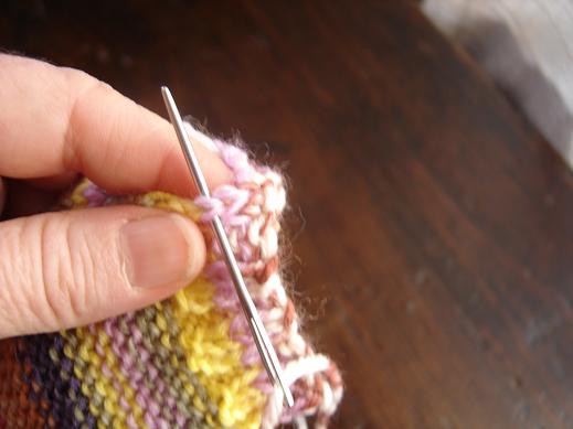 Chiudete le maglie lavorando le dritte a dritto e quelle a rovescio a rovescio e tagliate il filo abbastanza lungo per poter cucire.